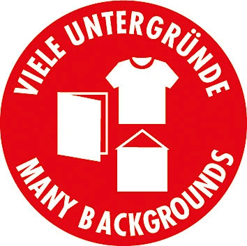 – für Untergründe wie Papier, Holz, Metall, Glas, Leder, Plastik, Textilien (bis max. 20 % Kunstfaseranteil) geeignet