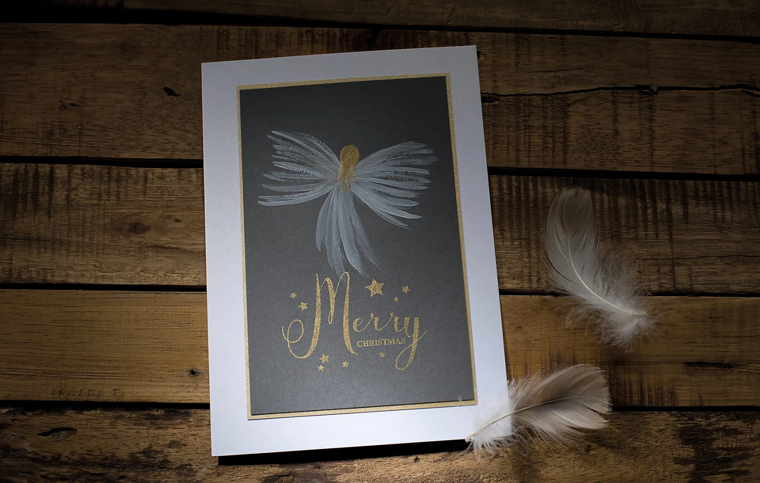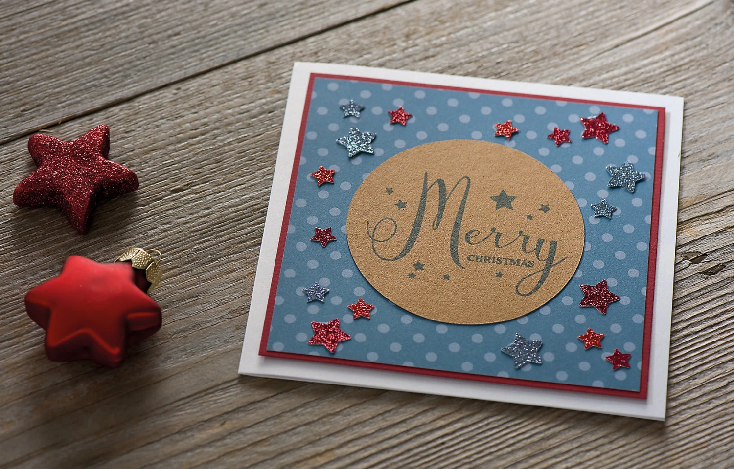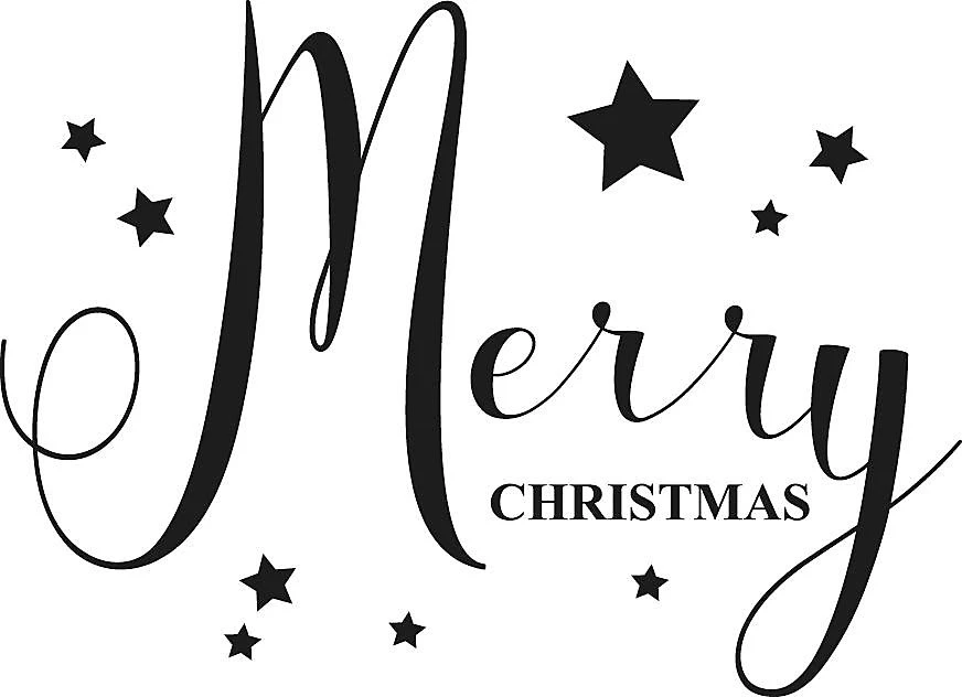– Stempel mit Aufschrift „Merry Christmas“ und kleinen Sternen